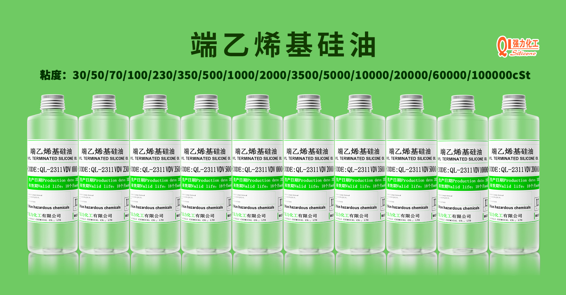 基础硅油:乙烯基封端聚二甲基硅氧烷 (Vi-PDMS),粘度 1000-10000cps,乙烯基含量 0.02-0.5mmol/g